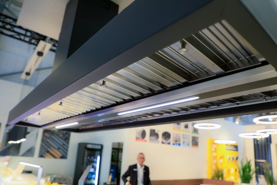 Neueste Haubentechnologie von Airforce setzte der Zubehörgroßhändler Vogt auf der area30 in Szene. Vor allem das Haubendesign der Serie „Revolutionairy“ mit markantem Flammschutzfilter aus Edelstahl (mit Fettabscheidefunktion) zog die Blicke auf sich.