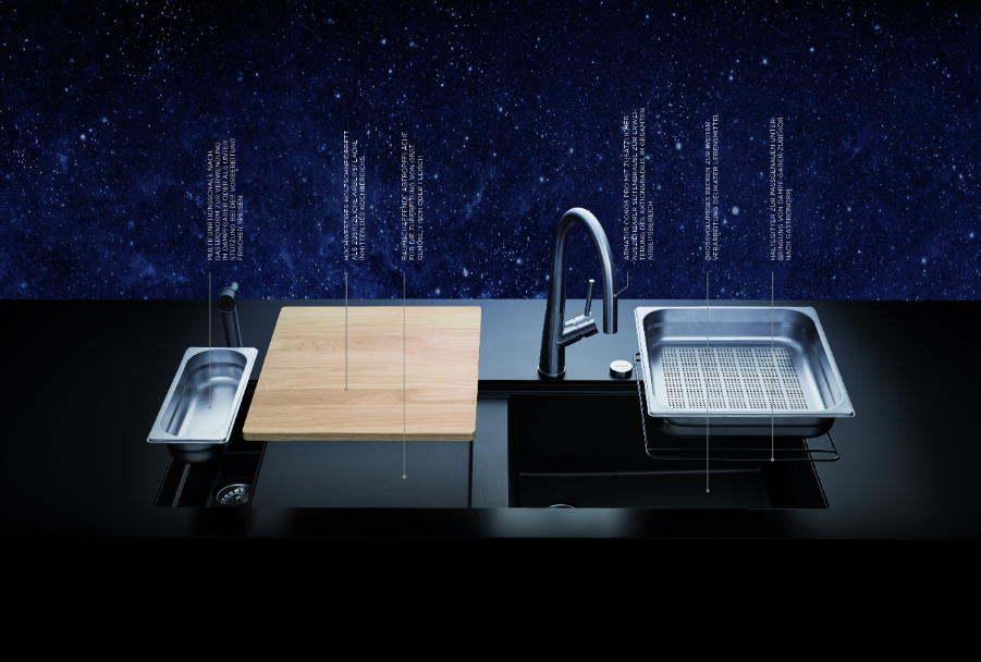 Die „Prepstation“ von Schock will mehr als eine Spüle sein. Nämlich ein professionelles Vorbereitungscenter. Dafür wurde eine Arbeitsfläche integriert und diverses Zubehör entwickelt.