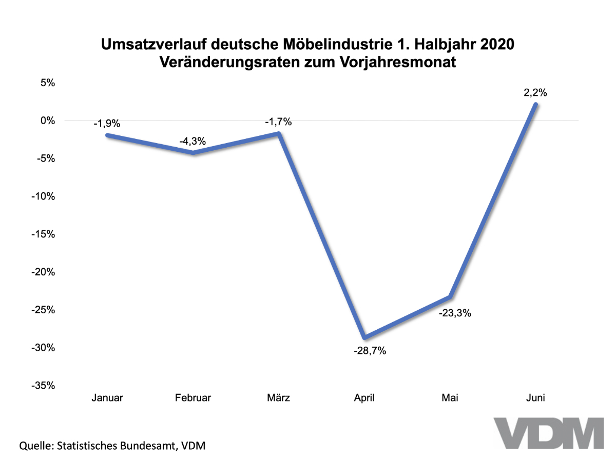 Am Anfang der Pandemie befürchtete die Möbelbranche Umsatzeinbußen von 20 Prozent oder mehr. Dann kam eine erste Relativierung mit einem geschätzten Jahresminus von 10 Prozent. Und jetzt die recht zuversichtliche Prognose, dass es kaum mehr als 5% Einbußen in diesem Jahr gibt.