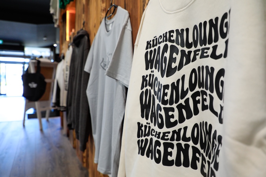Beispiele wie diese gäbe es viele zu berichten. Von der „Ladys & Men“-Night über diverse Kochsessions samt gemeinsamen Verkostungen am sechs Meter langen Massivholztisch bis zur Teilnahme am Wettbewerb „Deutschland kocht“, bei dem Vanessa, die Kandidatin der Küchenlounge, das Ticket für die Finalteilnahme auf der IFA in Berlin buchen konnte. Was diese Events und Sonderaktionen prägt, ist laut Selbsteinschätzung „der Grat zwischen Genie und Wahnsinn“. Das mündet auch schon mal in der Idee, Toilettenpapier mit dem Konterfei der beiden Firmenchefs zu bedrucken. Man nimmt sich halt selbst nicht so ernst. Für die wachsende Fangemeinde gibt es inzwischen sogar einen Online-Shop, über den zahlreiche Merchandising-Produkte geordert werden können. Sonnenbrillen, Sweatshirts, Badelatschen und massive Holzschneidbretter. Und etwa 196 weitere Artikel – allesamt mit dem Küchenlounge-Logo veredelt. Persönliche Nähe kennt viele Wege.