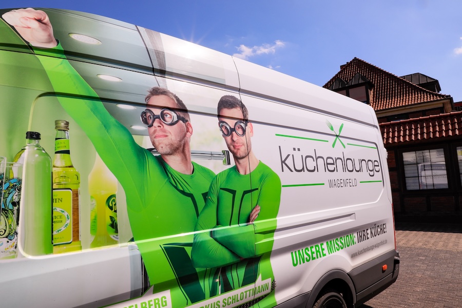 Im Dezember 2014 entschieden die beiden, dass es an der Zeit sei, „eine Selbstständigkeit in Betracht zu ziehen“. Deutlich spürbar war der Frust mit dem Angestelltendasein, nach wie vor groß die Freude an dem, was sie taten. Das fachliche Startkapital: Gespür für die Kundschaft und eine breit aufgestellte Mischung aus Planungs-, Verkaufs- und Montageerfahrung. Inklusive eines Faibles für Trockenbau, was sich später noch auszahlen sollte. Hinzu kamen Einsatzfreude und Mut. Wobei – was sollte schon schiefgehen? Es gab schließlich eine ausgefeilte Strategie: „Küchenkauf muss Bock machen.“ Das ist das Credo der beiden Küchenprofis. Und damit fahren sie bestens. „Wir sind positiv bekloppt“, ergänzt Maik Stoppelberg die Unternehmensphilosophie. Was wertschätzend gemeint nicht von der Hand zu weisen ist: Die ersten öffentlichen Werbeauftritte zeigten die beiden in giftgrünen Ganzkörperkostümen. Die Supermänner aus Wagenfeld. Gewagt, aber die Aufmerksamkeit für das junge Unternehmen war da.