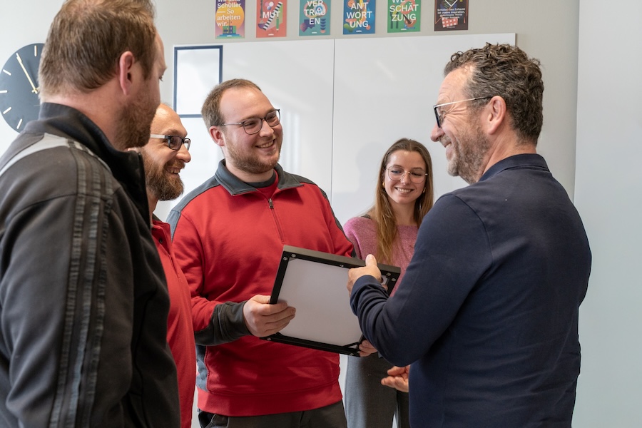 Die Auszeichnung überreichten die Geschäftsführer Markus Schüller, Max Heller und Manfred Niederauer persönlich. Als Gastgeschenk erhielt jede ausgezeichnete Person einen in der hauseigenen Produktion gefertigten Bilderrahmen für das Abschlusszertifikat.