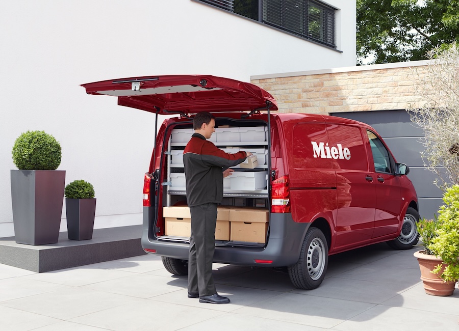 Optimierte Ersatzteilbestände in den Miele Servicefahrzeugen ermöglichen Reparaturen fast immer beim ersten Besuch. Foto: Miele