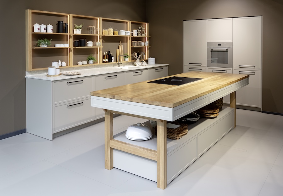Die grundlegende Richtung, in die sich das Küchendesign bewegt, ist schon seit einiger Zeit definiert, zeigt sich aber immer fokussierter. Behaglich soll es sein, ruhig, harmonisch und klar strukturiert. Die Hersteller jonglieren mit internationalen Einrichtungsstilen, einer Prise Retro und einem matten Minimalismus, der sich bei aller Zurückhaltung nicht im Puristischen verliert. Also alles rund und ruhig auf Basis von wohnlichen Erdtönen und metallischen Akzenten? Durchaus. Aber nicht nur, wie die Impressionen aus den Ausstellungen der Küchenmöbelhersteller dokumentieren. In Summe zeigt sich eine Evolution des Cocooning. Entschleunigung daheim, während sich die Welt draußen überschlägt.