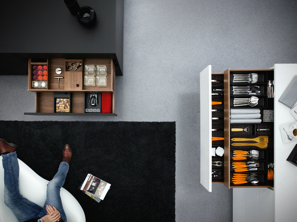 Möglichst viel Stauraum auf kleinster Fläche. Das ist einer der beiden maßgeblichen Trends bei der Innengestaltung von Möbeln. Der zweite lautet: elegante Optik. Denn was die Küchen im Außen an Attraktivität versprechen, sollten sie hinter den Fronten halten.